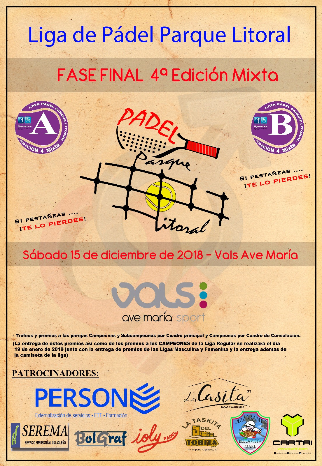 FASE FINAL LIGA PÁDEL PARQUE LITORAL 13ª EDICIÓN