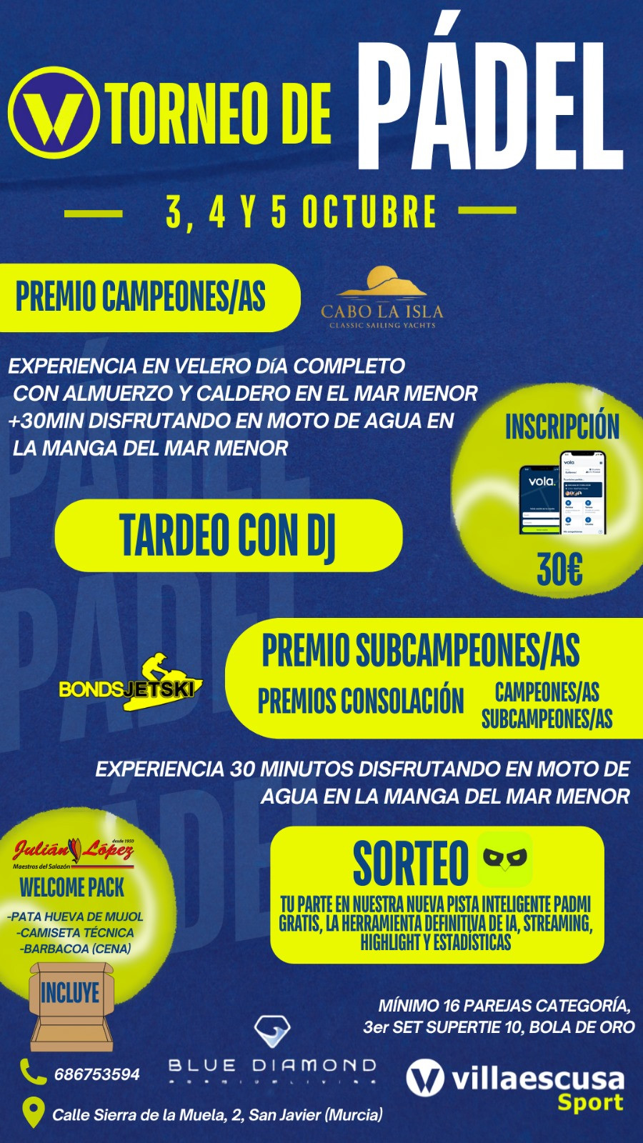 Ven a disfrutar de nuestras 5 pistas de pádel cubiertas de última generación, totalmente equipadas e iluminadas. Disfruta con tus amigos, familiares o en pareja jugando a este gran deporte. Da igual si llueve, hace sol o viento, porque con nuestras pistas interiores podrás pasar un rato divertido sin necesidad de preocuparte por el tiempo. Juega al pádel en un sitio inmejorable, con el mejor ambiente y, con una amplia oferta de servicios complementarios (gimnasio, clases de fitness, cafetería,…) a este gran, dinámico y agradecido deporte. ¡No lo dudes más y ven a probar nuestras pistas de pádel en San Javier!